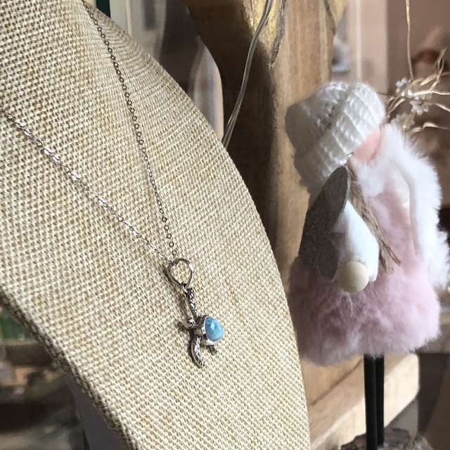 Chaîne argent 925 & tortue pierre larimar